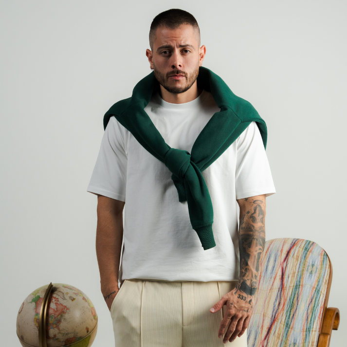 This tee is made with our exclusive 240gsm European fabric — a premium blend of 97% cotton and 3% elastane that feels incredibly soft, holds its shape, and moves with you.